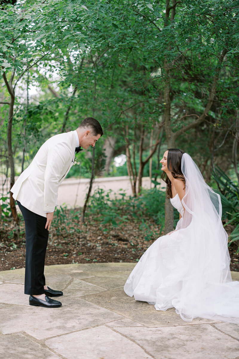 Under the sweeping branches of Sacred Oaks at Camp Lucy, these two said their vows surrounded by lush blooms and the people who know their hearts best. And when it was official, they didn’t just walk back up the aisle — they skipped, hand-in-hand, laughing all the way into forever.